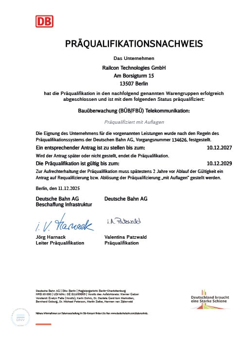 Die Railcon Technologies GmbH ist stets bemüht alle Standards zu erfüllen oder sie sogar zu übertreffen. Es ist uns ein großes Bestreben, als ein sehr vertrauensvolles sowie nachhaltiges Unternehmen auf dem Markt wahrgenommen zu werden. Wir möchten, dass jeder egal ob Auftraggeber, Mitarbeiter oder weitere Vertragspartner ein gutes Gefühl hat, Partner von uns zu sein.
